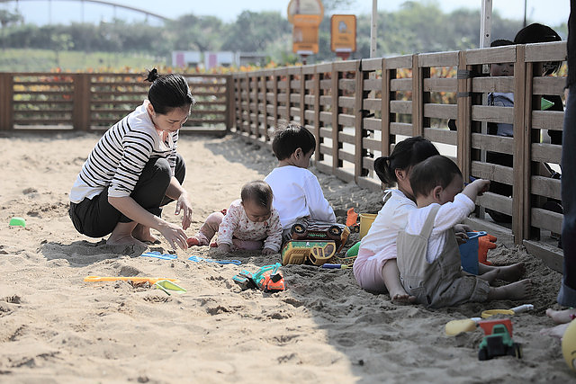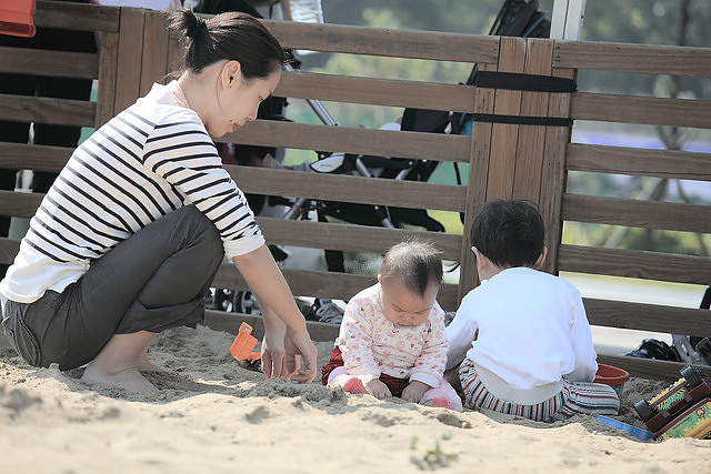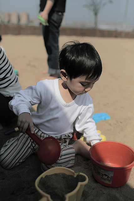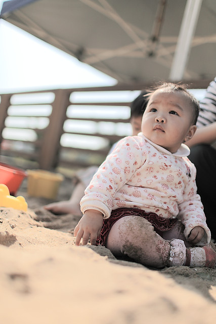 初次嘗先的小孩對沙的反應不太一樣,有些小小孩會怕會不敢坐