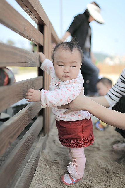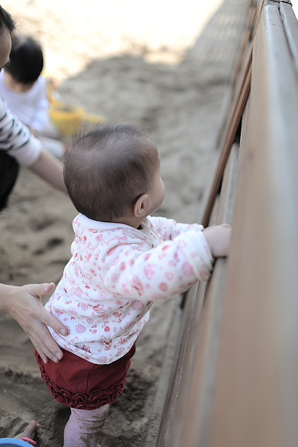 或不會走路,不過應該都是首次的反應,不會有小孩不愛玩沙的