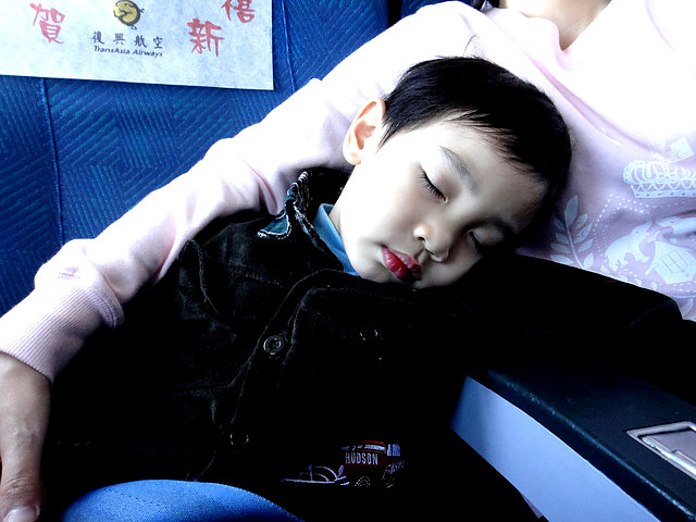 先前還擔心在機上她會不耐煩吵到別人,ViVi不像哥哥可以用親餵方式安撫