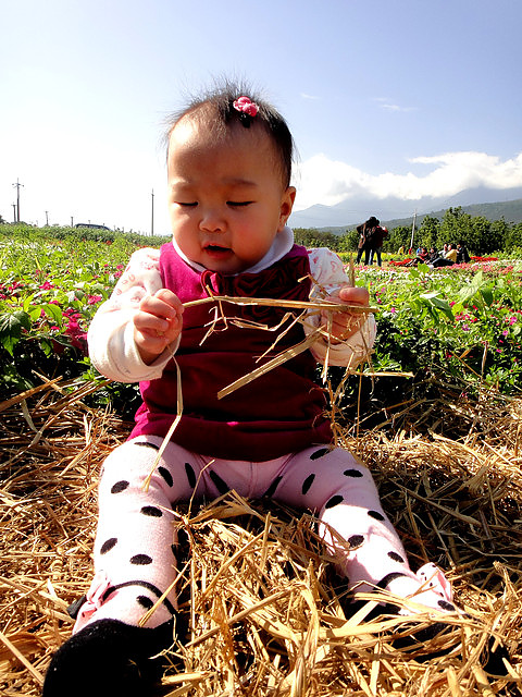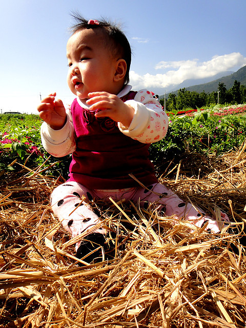 稻草推讓她玩玩稻草,ViVi不時被拍照入鏡當起model,爸比怪我不讓他