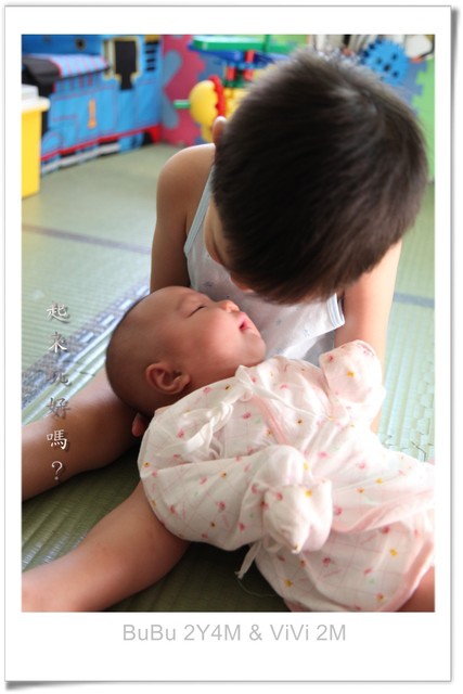 ㄅㄨ仔很愛近距離看ViVi,很想學我們抱ViVi,ViVi剃髮後老說ViVi頭很大,